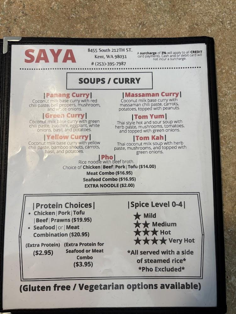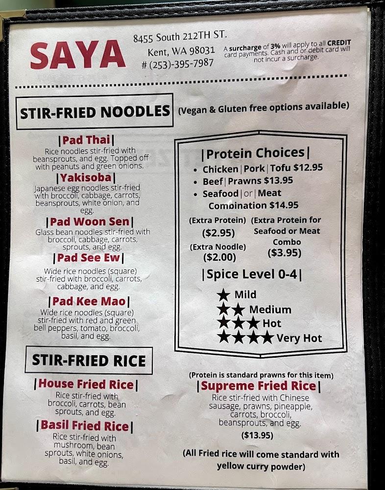 Welcome to Saya Restaurant, a family-friendly Thai and Asian culinary haven located in Kent, WA. Enjoy a vibrant menu featuring traditional favorites like Pad Thai, Pho, and Karaage, perfect for sharing. Our inviting atmosphere makes it an ideal spot for casual dining, takeout, or catering services. We cater to all dietary preferences, including vegetarian options, and offer a selection of beverages, including wines and craft beers. With ample parking, wheelchair accessibility, and a welcoming environment for children, Saya Restaurant is your go-to destination for a delightful dining experience. Join us for lunch or dinner and savor the flavors of Asia!